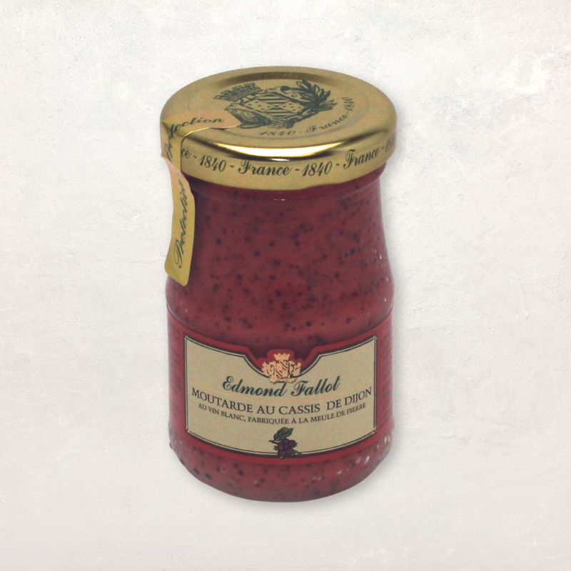 Avec sa belle robe rouge et un goût fruité, cette moutarde a été confectionnée avec de la véritable crème de cassis de Dijon.