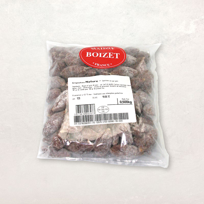 Ces mini saucissons nature sont préparés avec les meilleurs morceaux de porc. Pratiques, faciles à emporter ils peuvent être dégustés en pique-nique, à l'apéritif, ou être servis en entrée avec un plateau de charcuterie accompagnés de pain frais.