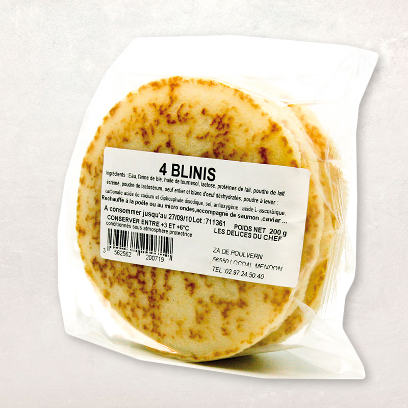 Prêts à garnir après avoir été réchauffés, de préférence au grille-pain, ces grands blinis tendres et moelleux s'associent parfaitement à du saumon fumé ou des œufs de poisson sur du fromage frais, des sardines sur une poivronnade, de l'avocat et des crevettes, des antipasti, des rillettes de la mer, une composition de fromage miel et fruits secs...