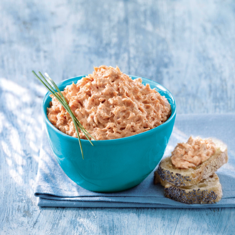 Préparée en Bretagne avec des produis savoureux et authentiques au service d’une gastronomie réinventée, cette tartinable de saumon, saumon fumé et pointe de persil se prête parfaitement à un partage convivial pour l'apéritif.