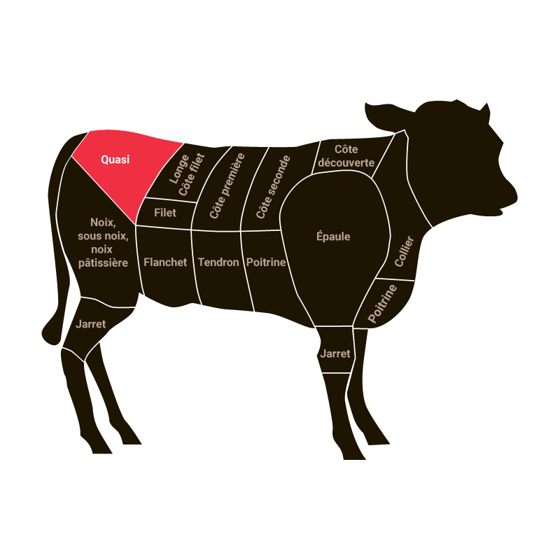 Découpé dans une pièce noble du veau, ce rôti de quasi séduit par sa chair tendre, maigre et savoureuse.
