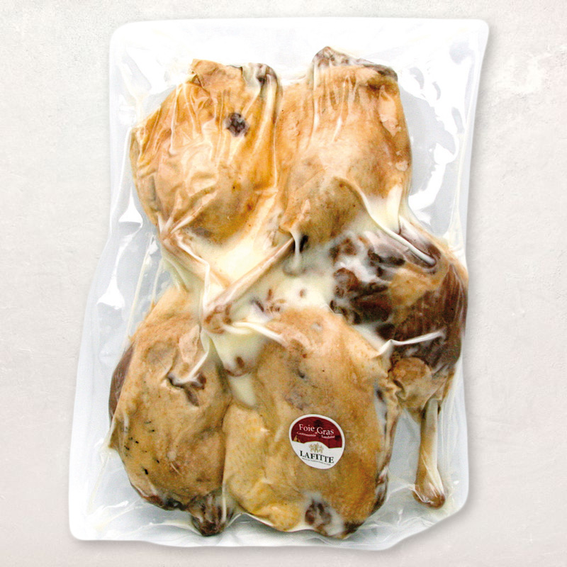 Et grâce à la qualité de ses canards élevés dans les Landes et à l'utilisation exclusive de graisse de canard et de sel pour la réalisation de cette recette la Maison Lafitte garantit une viande à la fois ferme et fondante.