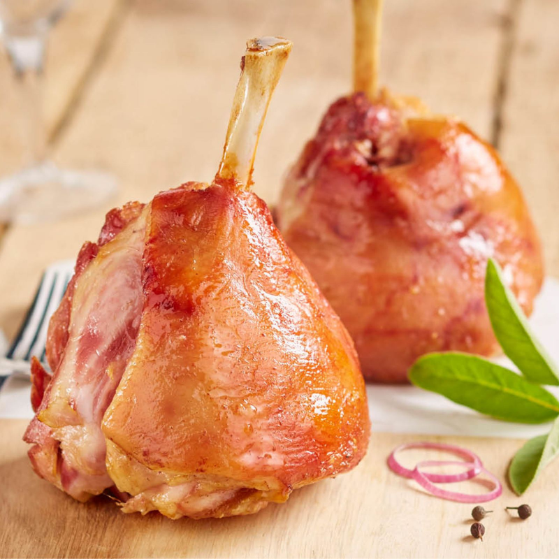 De qualité supérieure, ce jambonneau est travaillé à traditionnellement à la main et cuit lentement dans un bouillon pour obtenir un produit très savoureux. On le tranche à loisir pour compléter une salade ou pour agrémenter un authentique plateau de charcuterie.