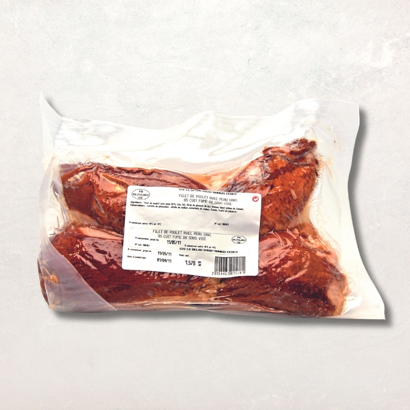Ce filet de poulet fumé cuit incarne l'harmonie parfaite entre la finesse de la volaille et l'art du fumage traditionnel.