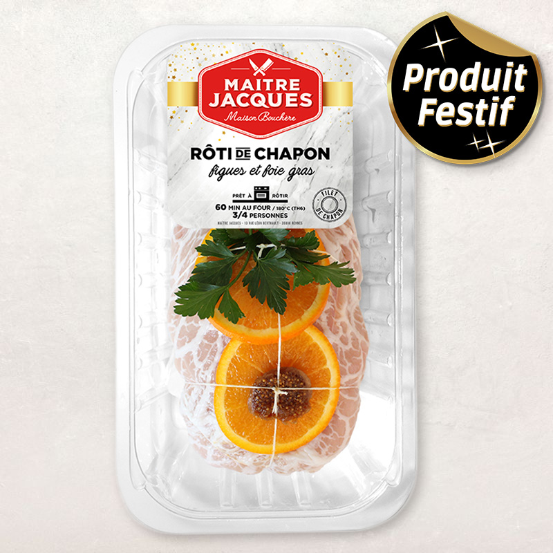 Rôti de chapon mariné farci figues et foie gras de canard 750-850g